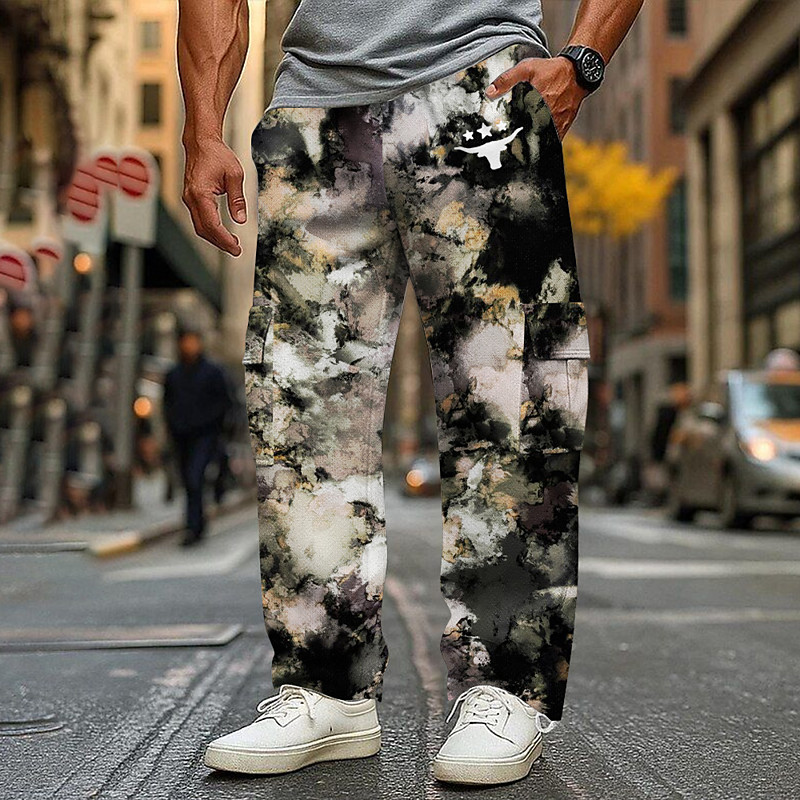 Men's Camo Camouflage Cargo Sweatpants Joggers Casual Pants Mid Waist Casual Outdoor Athletic Hunting Elastic Drawstring Waist Open Bottom Tactical Pants with Pockets Spring Fall 3D Print Black