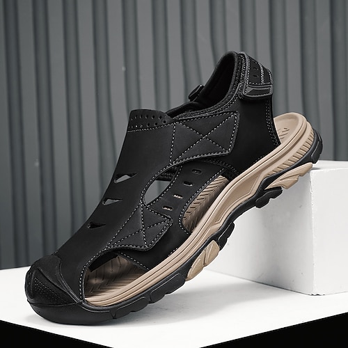 sandali da uomo color cachi, protezione per le dita chiuse, sistema di regolazione della calzata, stile leggero e confortevole per escursionismo, campeggio e uso quotidiano