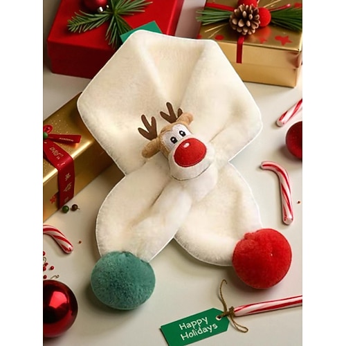 sciarpa di peluche per bambini con renna natalizia, pompon e naso rosso - comodo accessorio natalizio per l'inverno e il Natale