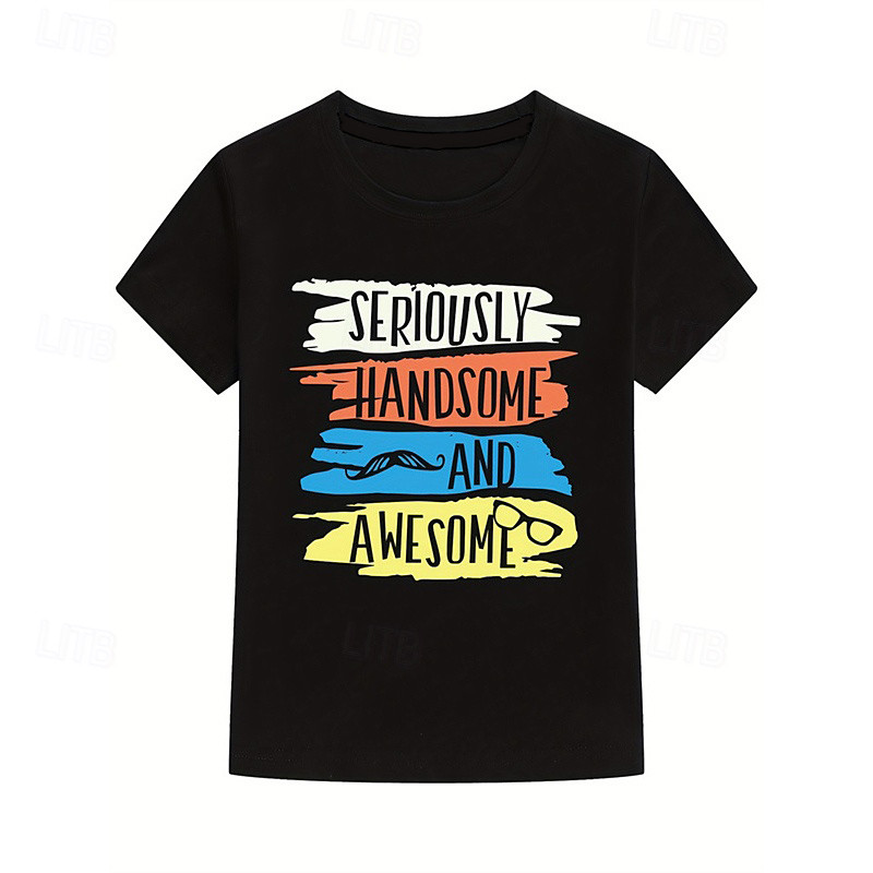 Boys 3D Letter T shirt Tee Short Sleeve Summer Spring Fashion Basic 100% Cotton Kids 4-12 Years Crew Neck Outdoor Casual Daily Regular Fit