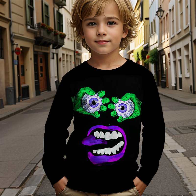 Boys' Cartoon Funny Smile Face T shirt Tee Long Sleeve 3D Print Fall Winter Fashion Basic Kids 4-12 Years Crew Neck Outdoor Casual Daily Regular Fit