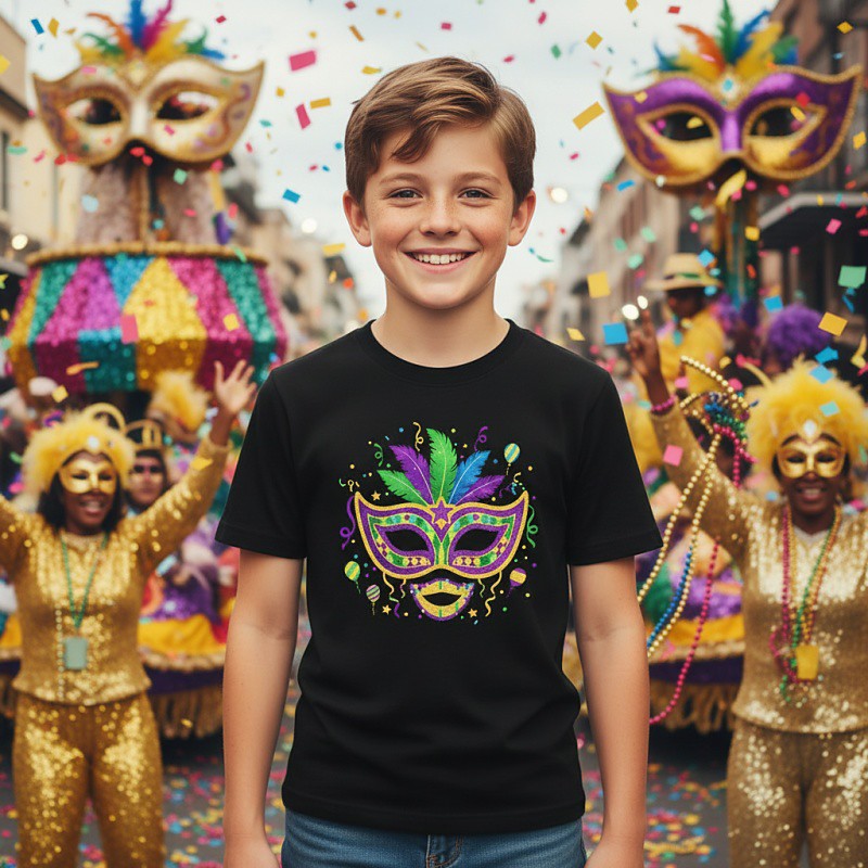 Cotton 100% Cotton Carnival Kids Boys' Blue Black White Graphic Mask Mardi Gras T shirt Blouse Crew Neck Short Sleeve Outdoor Dailywear Fashion Streetwear Designer Printing Summer All Seasons