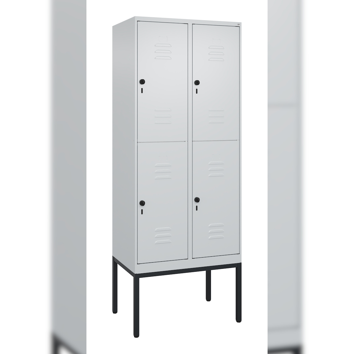 Spind Evolo PLUS, 2 Abteile, lichtgrau / lichtblau, B 800 mm, mit breiten Füßen, Drehriegel C+P