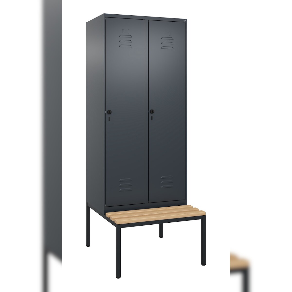 C+P Spind Classic PLUS, Buche untergebaute Sitzbank 2 Abteile, HxBxT 212x80x82cm, Sicherheitsdrehriegel, Anthrazit von PROREGAL