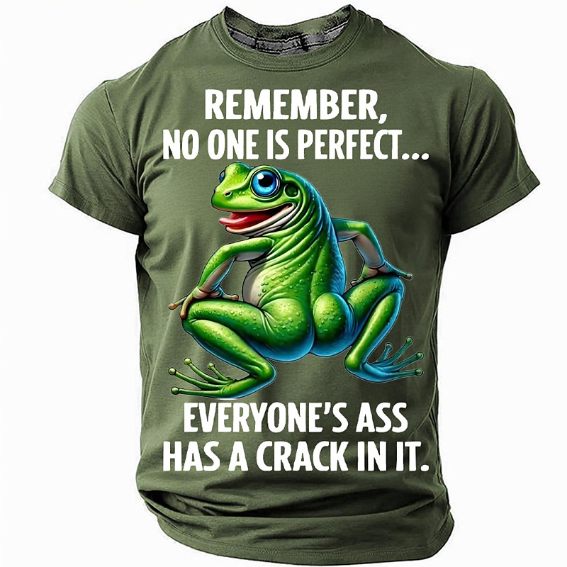 Men's Funny Graphic T-Shirt - Remember, No One Is Perfect... Everyone's Ass Has A Crack In It Frog Humorous Short Sleeve Tee