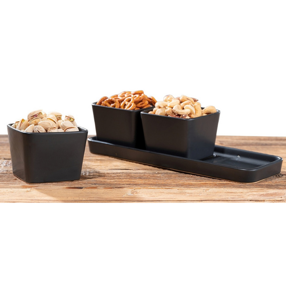 WENKO Snack & Dip Schalen Set Schwarz matt, Tablett mit 3 x 300 ml Schalen