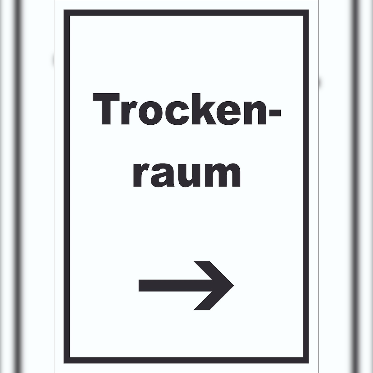 HB-Druck Trockenraum Schild mit Text und Richtungspfeil rechts Wäsche trocknen hochkant A4 Rückseite selbstklebend
