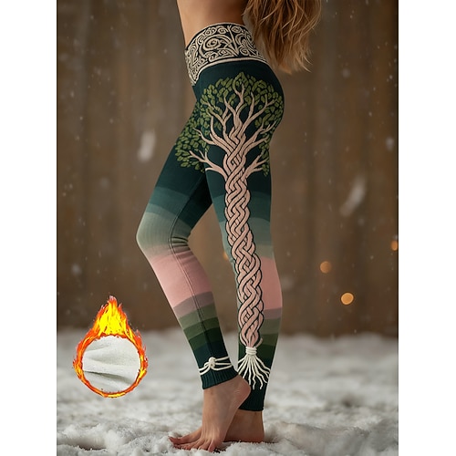 Per donna leggings foderati in pile Leggings Vintage Stile Etnico Etnico Lunghezza alla caviglia Vita Alta Grafico Motivo Geometrico Astratto Stampa 3D Calore Termico Antivento Comodo Elasticizzato