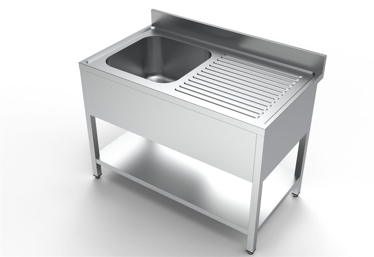 Edelstahl Spültisch PRO mit Grundboden 120 x 70 cm - 1 Becken links