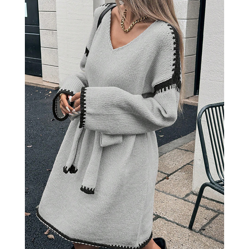Women's Mini Dress Sweater Dress Classic Modern Daily Outdoor Holiday Regular Fit Color Block Long Sleeve V Neck Black White Red Light Grey Fall