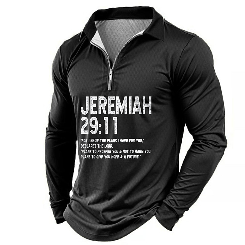 Men's Zip Polo Long Sleeve Polo Shirts Collar Business Casual Vacation Party Evening Wear Dailywear 3D Print Spring Fall Winter Black Blue Green