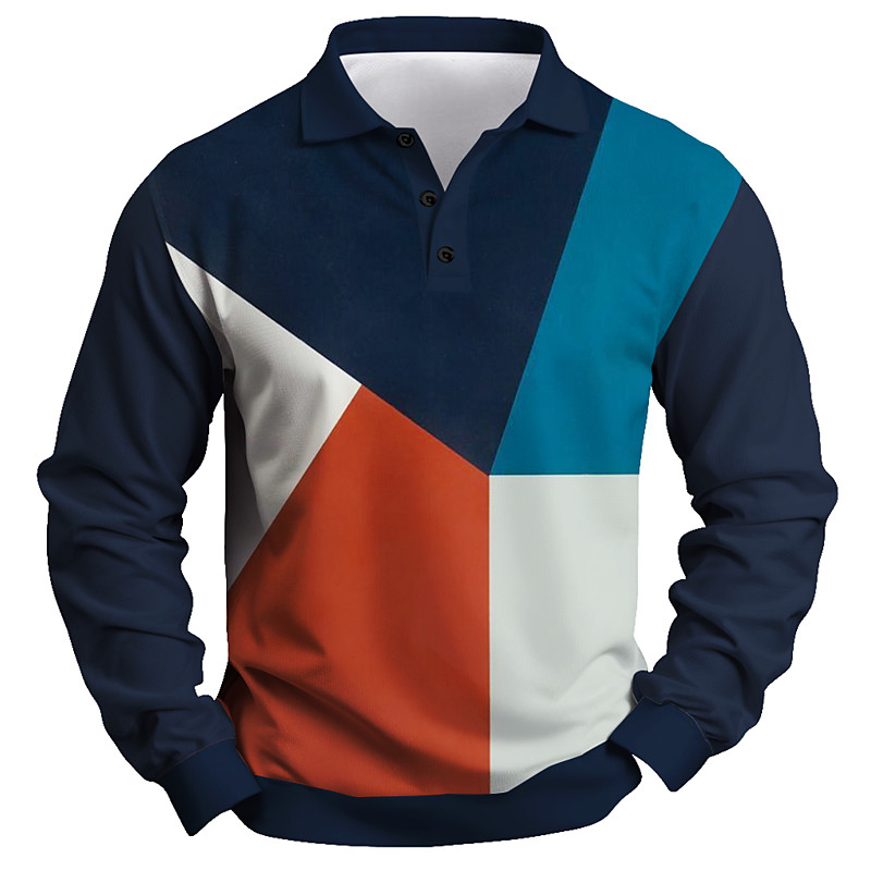 Men's Geometric Abstract Polo Long Sleeve Polo Shirts Lapel Casual Outdoor Street Athleisure Sports 3D Print Buttons Spring Fall Winter White Blue Green