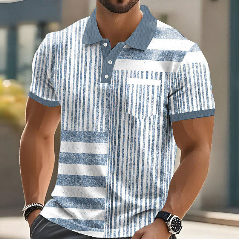 Men's Geometic Line Polo Short Sleeve Polo Shirts Collared Shirts Business Casual Business Pocket 3D Print Buttons Summer Black Dark Green Dark Blue