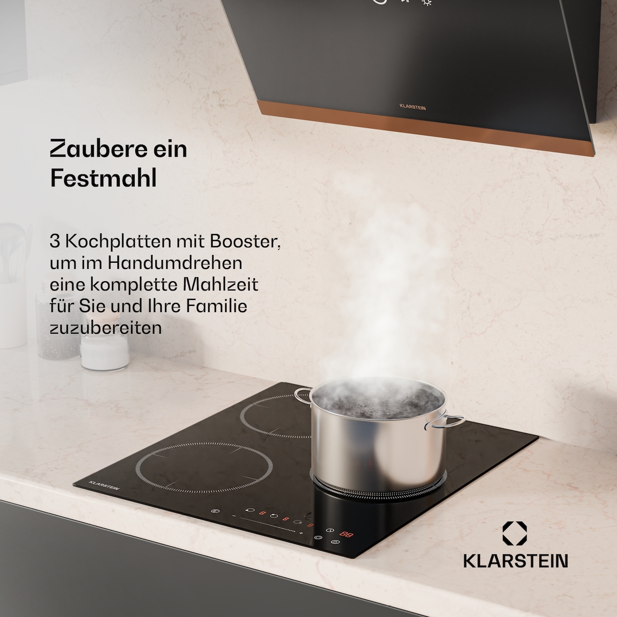 Klarstein Delicatessa Induktionskochfeld | 45 cm | 6600 W | 3 Kochfelder | Slider-Control | Boost Schwarz