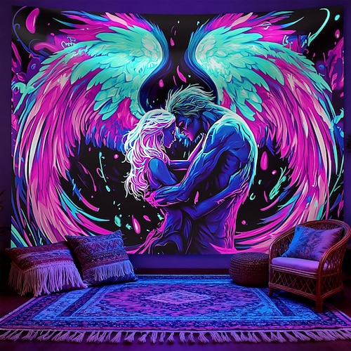 Arazzo da parete con luce nera, reattivo ai raggi UV, ali d'angelo che si illuminano al buio, arte murale con luce nera, poster per camera da letto, feste, dormitorio e decorazioni per festival