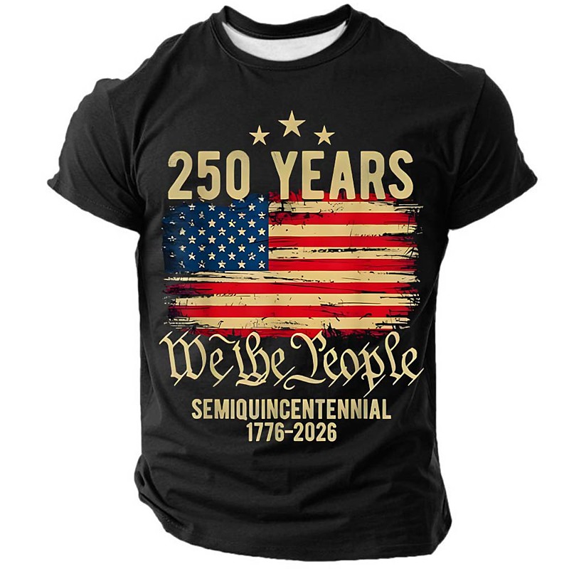 Men's American US Flag America's 250th Anniversary T Shirt Short Sleeve T shirt 3D Print Crew Neck Shirt Daily Military Street Daily Blue Black Red Summer Spring Clothing Apparel S M L XL XXL XXXL