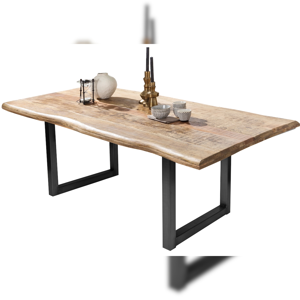 SIT Möbel Esstisch mit Baumkante | 180 cm | Platte Mango natur | Gestell Metall antikschwarz | B 180 x T 90 x H 76 cm | 15491-11 | Serie TABLES & CO