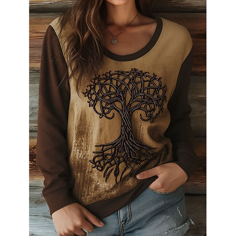 Women's T Shirt Graphic Animal Tribal Vintage Stylish Classic Long Sleeve Crew Neck Round Neck Long Tops Daily Print Black Brown Khaki Spring Fall