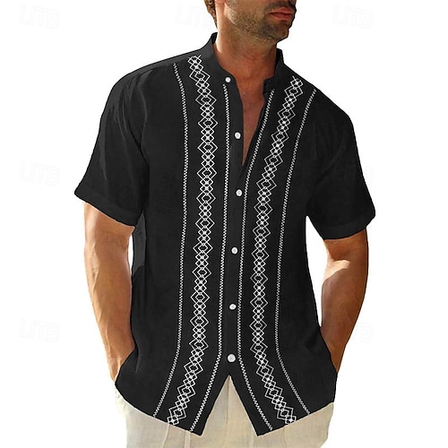 Per uomo Camicia Guayabera Camicia Estiva Camicia casual Camicia con Bottoni Nero Bianco Blu Verde Grigio Manica Corta Boho Paisley Damasco Colore Solido / Tinta Unita Colletto alla coreana Vacanza
