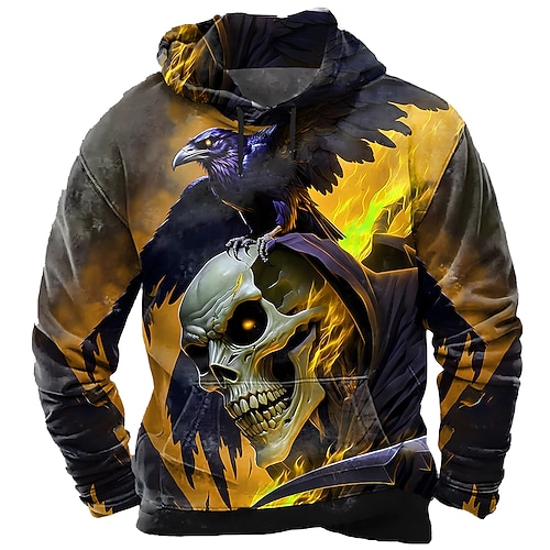 Per uomo Teschio 3D Felpa con Cappuccio Felpa Punk Esagerato Gotico Casual Manica Lunga Girocollo Con Cappuccio Club Abbigliamento casual alla moda Giallo Rosso Verde Coulisse Autunno Inverno