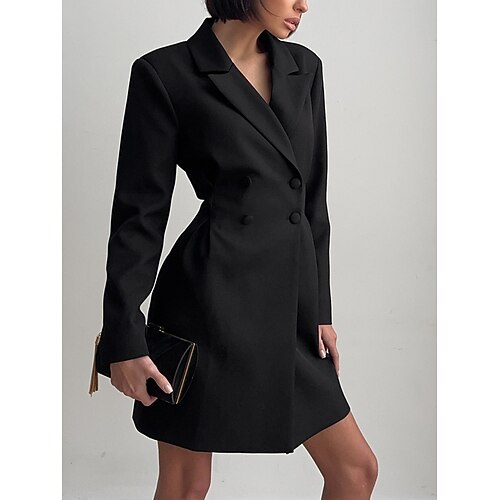 Per donna Mini Abito Abito da lavoro Abito blazer Elegante Moda Moderno All'aperto Ufficio Ferie Vestibilità regolare Semplice Manica Lunga Colletto a Camicia Nero Bianco Estate Primavera