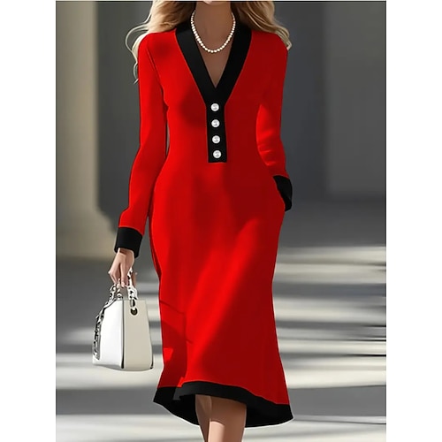 Per donna Blusa Top Eleganti Semplice Elegante Vintage Tropicale Manica Lunga Scollo a V Top Regolari Lavoro Quotidiano Ferie Arricciato Patchwork Bottoni Nero Bianco Rosso Blu marino Autunno Inverno