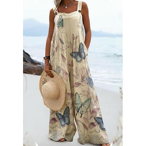 Per donna Salopette Attivo Grafico Senza Maniche Senza maniche Gamba larga Tasca Bottoni Quotidiano Spiaggia Vestibilità comoda Blu Rosa Verde Estate