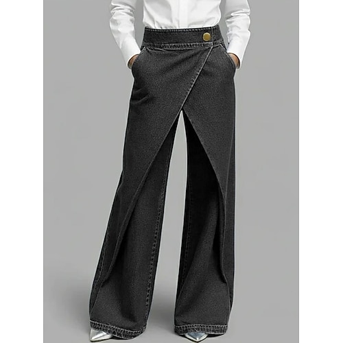 Per donna Gamba larga Chinos Vacanza Essenziale Lunghezza intera Misura del girovita medio Comodità Inelastico Quotidiano Blu Nero Primavera Vestibilità comoda
