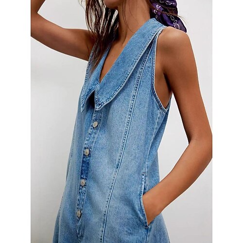 Per donna Tutina Attivo Senza Maniche Dritto Quotidiano Vacanza Vestibilità comoda Blu Blu marino Primavera