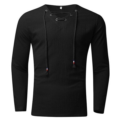 Per uomo Camicia di lino Maglietta Camicia a Maniche Lunghe Manica Lunga Scollo a V Primavera Autunno Tinta unica Casual Allacciato Vacanza Abbigliamento da Casa Nero Bianco Grigio Maglietta Top