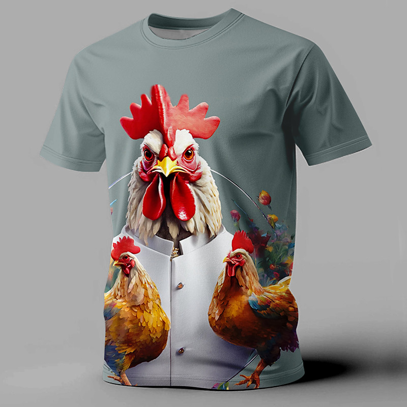 Men's Rooster T Shirt Short Sleeve T shirt 3D Print Crew Neck Shirt Fashion Athleisure Street Sports Outdoor Gray Summer Spring Clothing Apparel S M L XL XXL XXXL