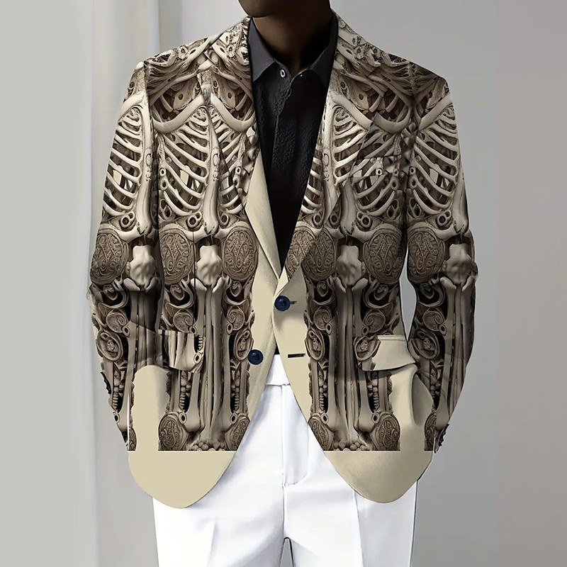 Men's Coat Blazer Outdoor Street Festival Casual Daily Modern All Seasons 100% Polyester Skeleton 3D Print Buttons Comfortable Single Breasted Blazer Brown Gray