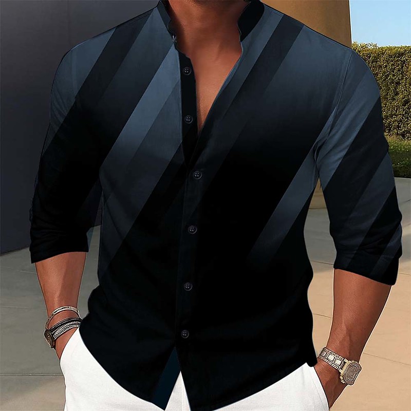 Men's Geometric Stripe Gradient Color Shirt Stand Collar Shirt Long Sleeve Fashion Casual Dailywear Holiday Spring Fall Mandarin Collar Band Collar 3D Print Button Up Shirts Blue Burgundy Green Gray