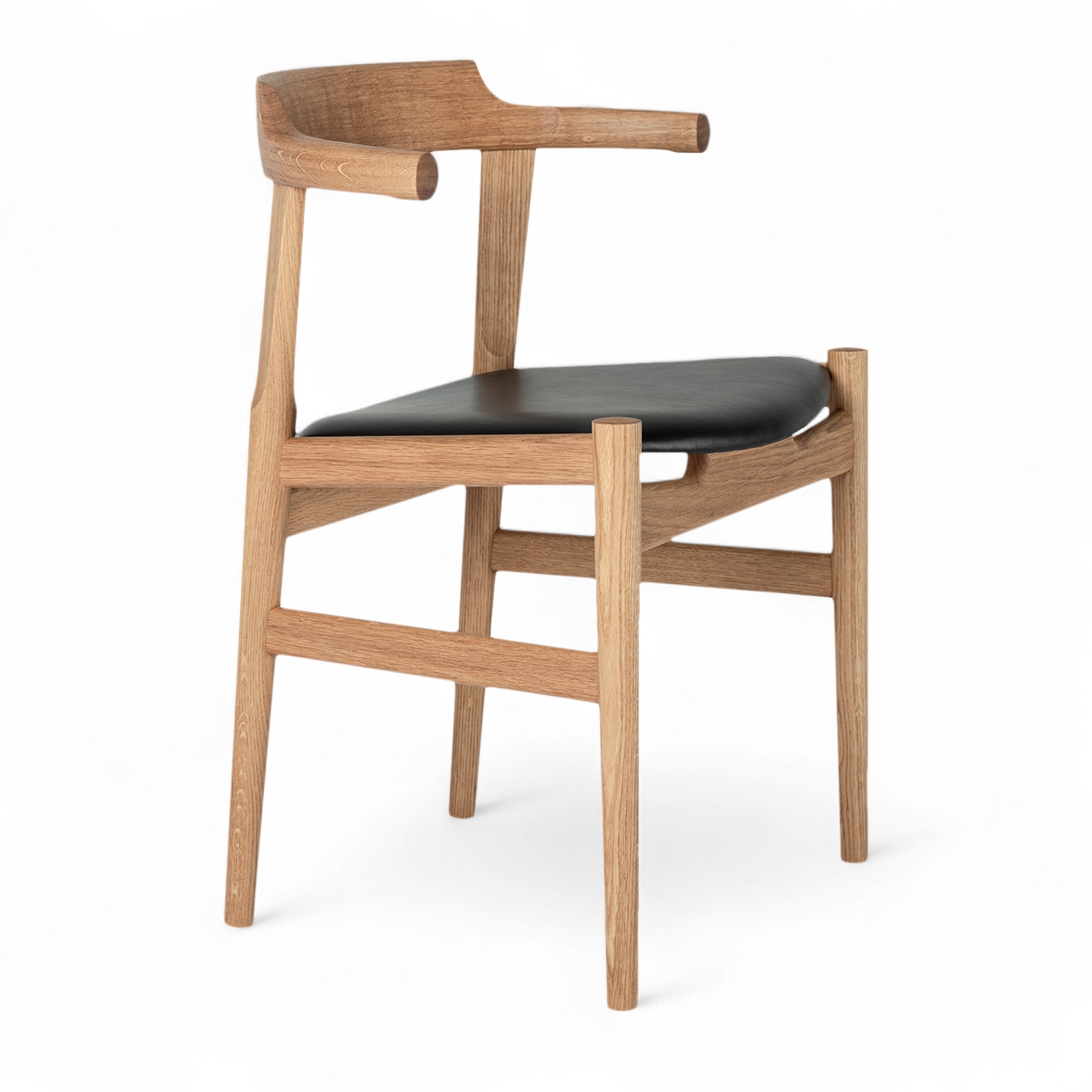 Carl Hansen - OW58, T-Chair, White Oiled Oak, Leather Cat. B Thor 307 - Matstolar - Ole Wanscher - Läder/Trä/Skum
