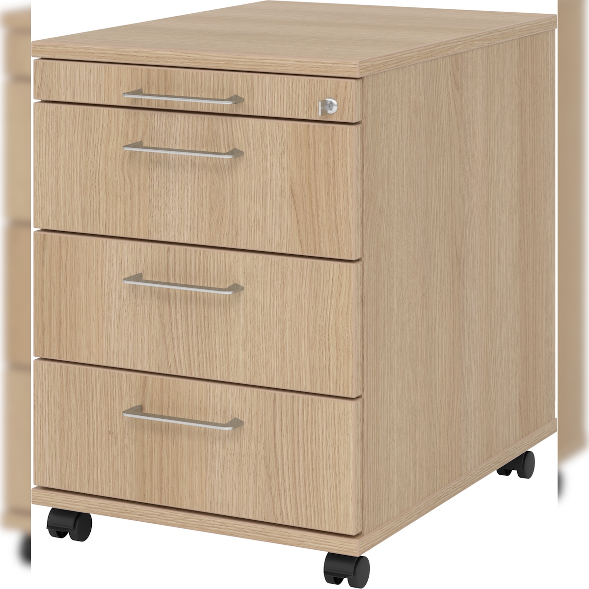 bümö basic Rollcontainer mit Schubladen, Container aus Holz in Asteiche - Rollwagen für's Büro als Schreibtisch Unterschrank, Bürocontainer od.