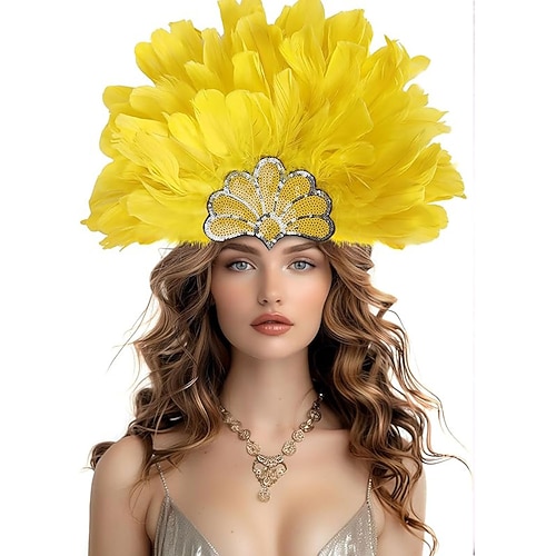 Carnival 2026 Rio Carnival Samba Accessories Copricapo con Piume per Donne - Copricapo Costume in Paillettes Giallo - Accessorio per Capelli da Showgirl Festival Mardi Gras Costume per Performance