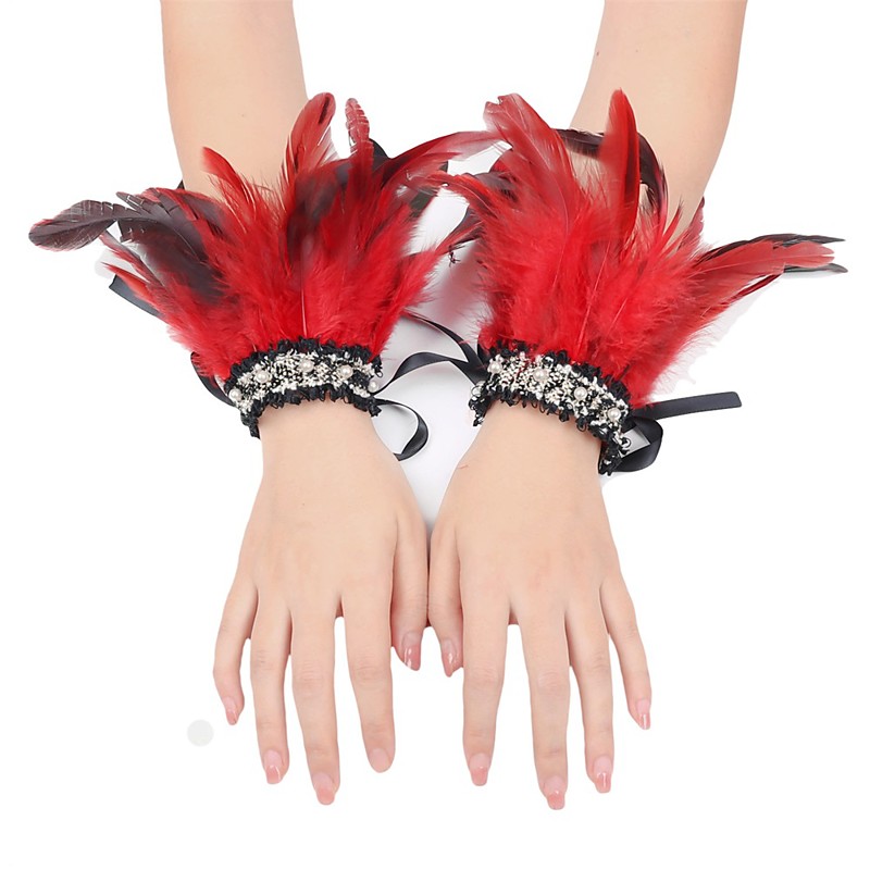 Carnival 2026Rio Carnival Samba Accessories Women's Black Feather Wrist Cuffs with Vintage Embroidered Ribbon Brazil Festival Performance Costume