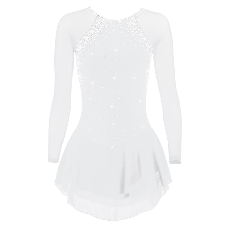 Figure Skating Dress Women's Girls' Ice Skating Dress White Patchwork Asymmetric Hem Mesh Spandex Stretchy Training Practice Professional Skating Wear Crystal / Rhinestone Long Sleeve Ice Skating