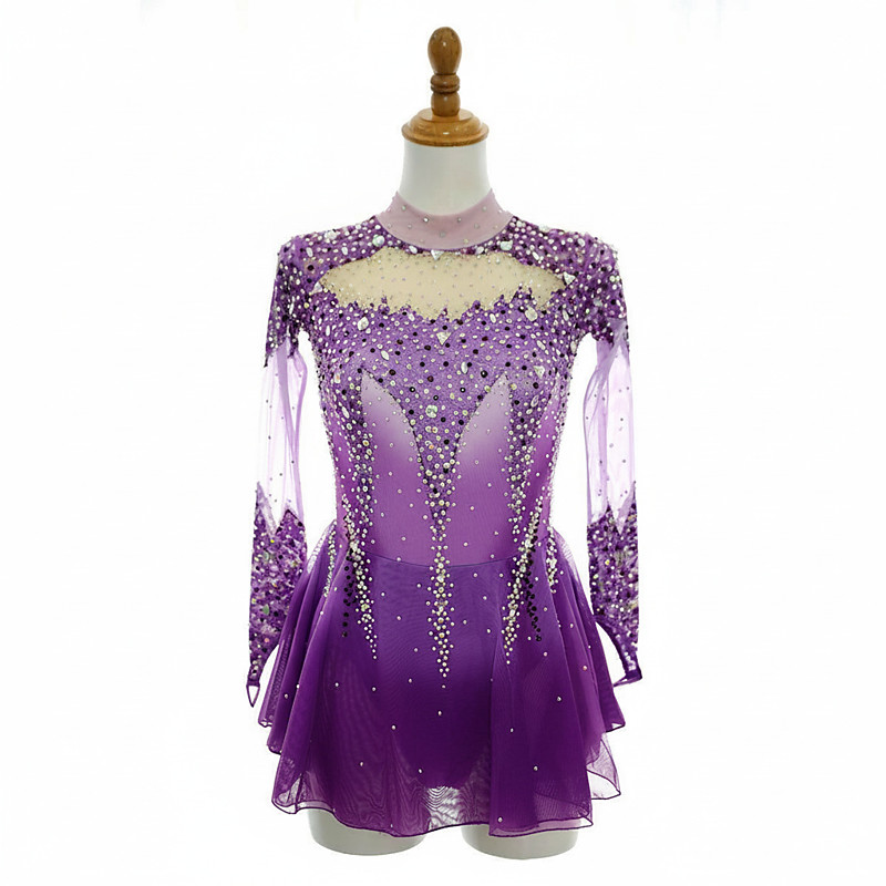 Figure Skating Dress Women's Girls' Ice Skating Dress Purple Thumbhole Halo Dyeing High Elasticity Professional Competition Skating Wear Thermal Warm Crystal / Rhinestone Long Sleeve Ice Skating