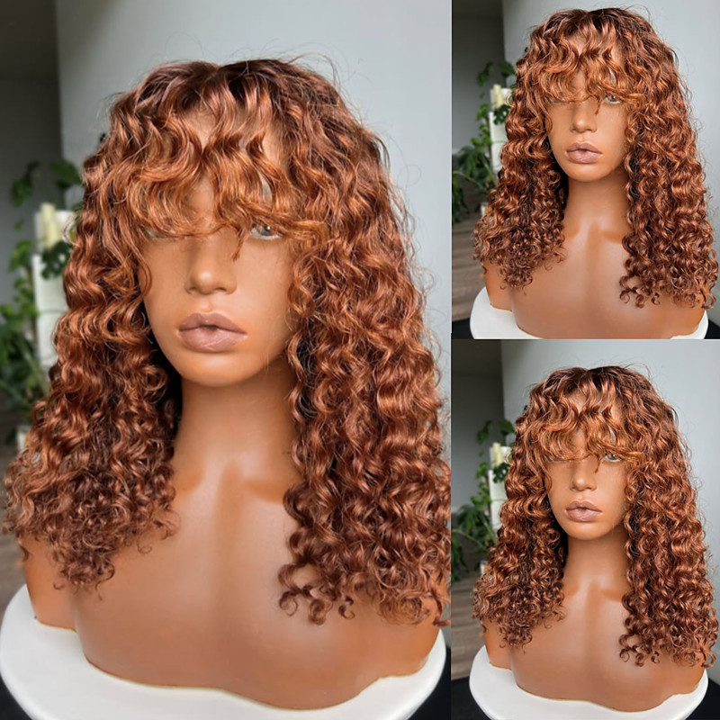 Remy Human Hair 5x5 Closure 13x4 Lace Front Wig With Bangs Brazilian Hair Curly Multi-color Wig 130% 150% Density Ombre Hair 100% Virgin Glueless Pre-Plucked For Women Long Human Hair Lace Wig