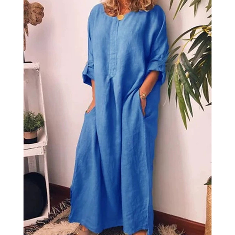 Women's Long Dress Maxi Dress Linen-Inspired Dresses Casual Dress Cotton Linen Dress Stylish Casual Vacation Daily Date Regular Fit Plain Long Sleeve Crew Neck White Yellow Blue Summer Spring