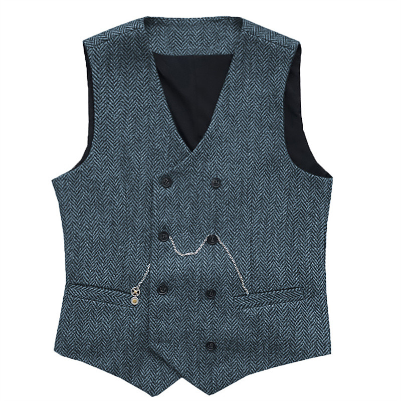 Men's Vest Waistcoat Gilet Vacation Daily Wedding Party Date Fashion Casual Spring Fall Buttons Pocket Polyester Comfortable Plain Double Breasted V Neck Regular Fit Silver Black Red Burgundy Vest