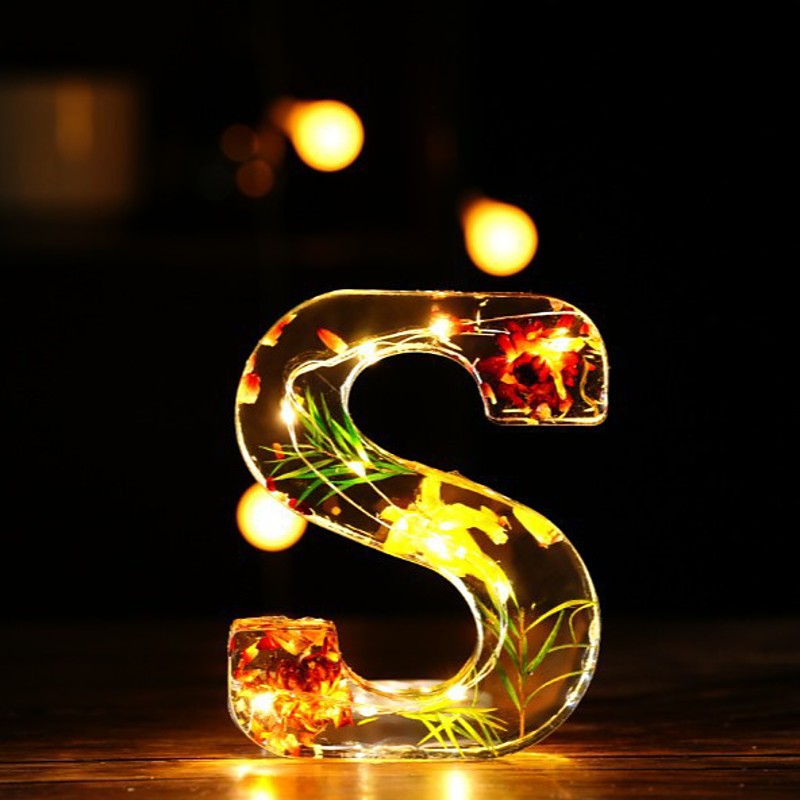 1 Pc 11.5CM 26 letter LED night light, dry flower warm light desktop decoration light, ornament light, Christmas Halloween wedding birthday party decoration light