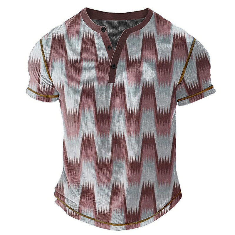 Men's Geometric Abstract Henley Shirt Waffle T Shirt Short Sleeve Daily Retro Vintage Classic Sports Outdoor Casual Holiday Summer Spring Spring Summer Dark Brown Green Burgundy Blue Henley Henley