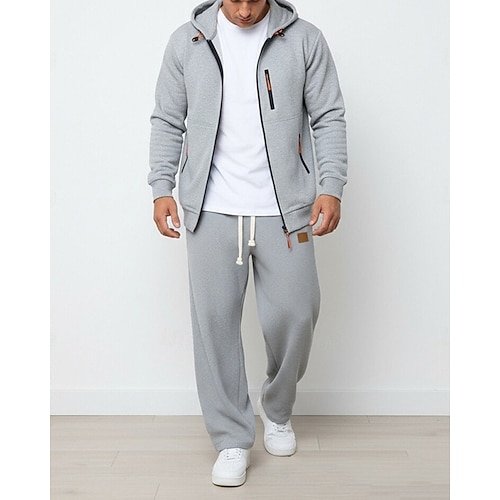 Per uomo Tuta da 2 pezzi Felpa con cappuccio Lounge Set di tute da ginnastica Tinta unita Completo Abbigliamento Primavera Grigio scuro Grigio chiaro Palestra Allenamento Corsa Vita Alta Leggero Di