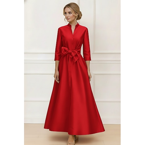 Linea ad A Lunghezza alla caviglia Vestito da Festa Abito da Cocktail Abito da invitata a nozze Abito da cerimonia per signora Manica 3/4 Scollo a V Elegante Minimalista Ospite di nozze Festa di