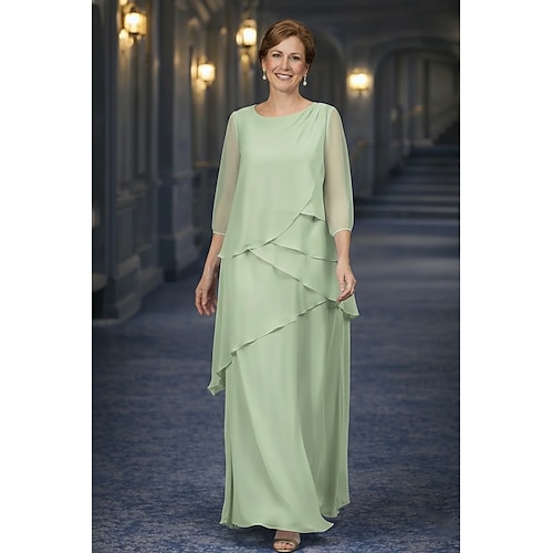 Linea ad A Abito Lunghezza al pavimento Abito da invitata a nozze Abito Formale Abito da sera Abito da cerimonia per signora Manica 3/4 Scollo Tondo Elegante Semplice Minimalista Formale Chiffon