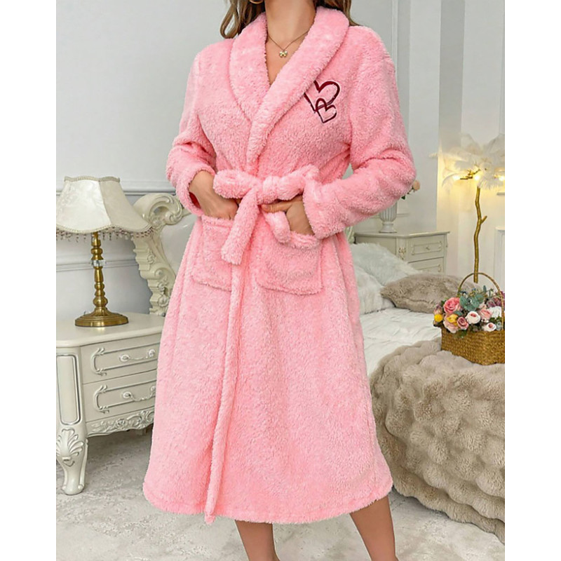 Women's Pajamas Loungewear Fashion Casual Heart Pocket Dress Vacation Home Long Sleeve Lapel Pink Purple Fall Winter Regular Fit