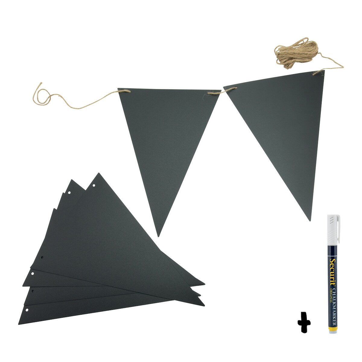Securit® Tafelkreide-Flaggen – Inkl. Kreidemarker & 4m Seil – 12er-Set