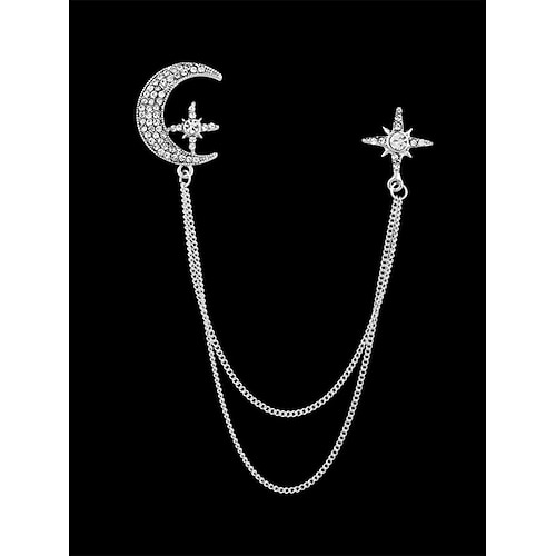 spilla da uomo in lega con luna e stella in finti diamanti, disponibile in oro e argento, perfetta per matrimoni ed eventi formali